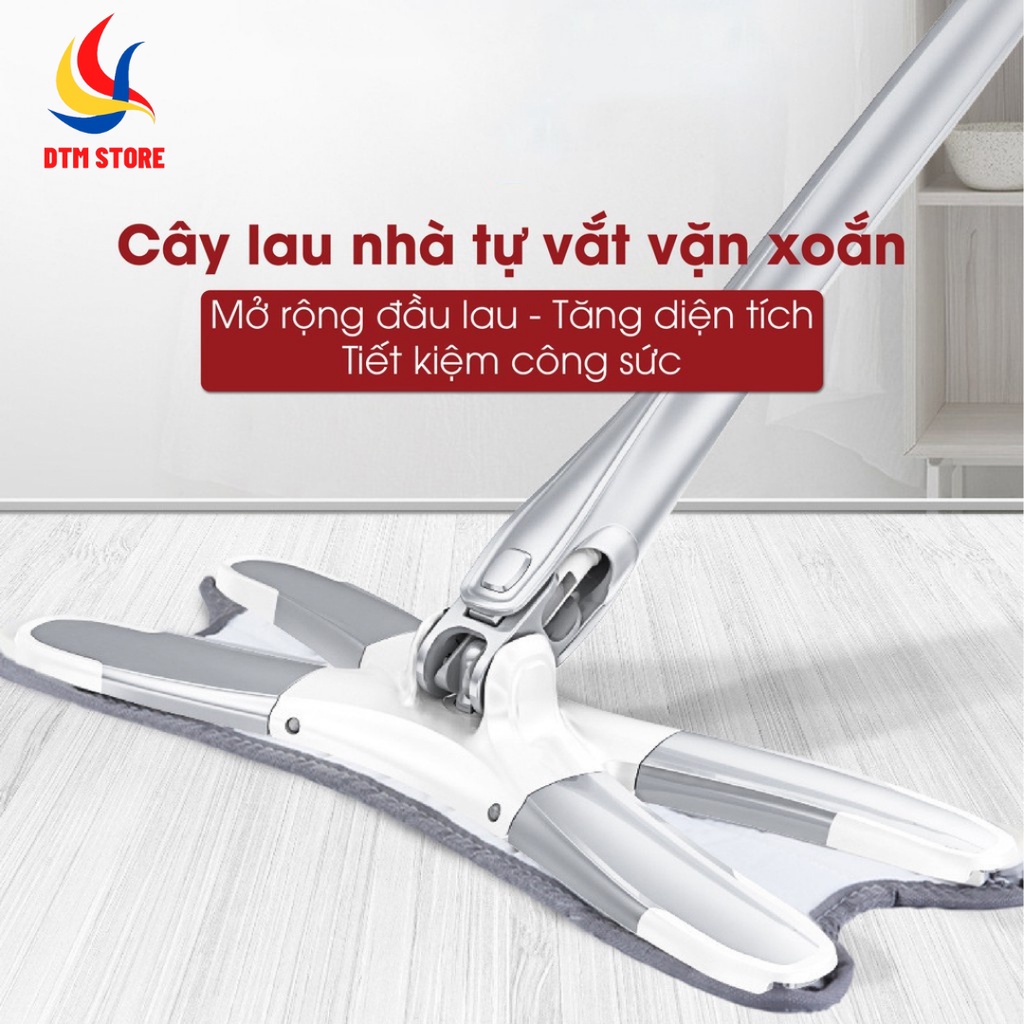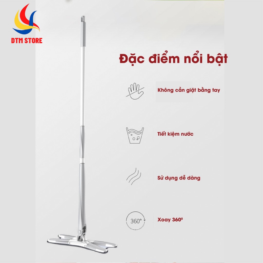 Cây lau nhà tự vắt,chổi lau nhà thông minh xoay 360 độ dạng chữ X kèm bàn chải làm sạch và bông lau - DTM Store