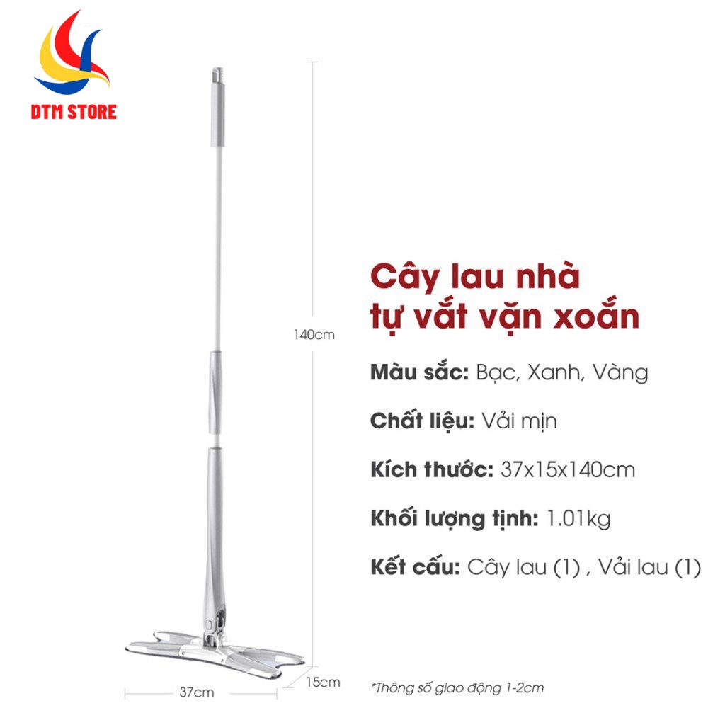 Giới thiệu Cây lau nhà tự vắt,chổi lau nhà thông minh xoay 360 độ dạng chữ X kèm bàn chải làm sạch và bông lau - DTM Store