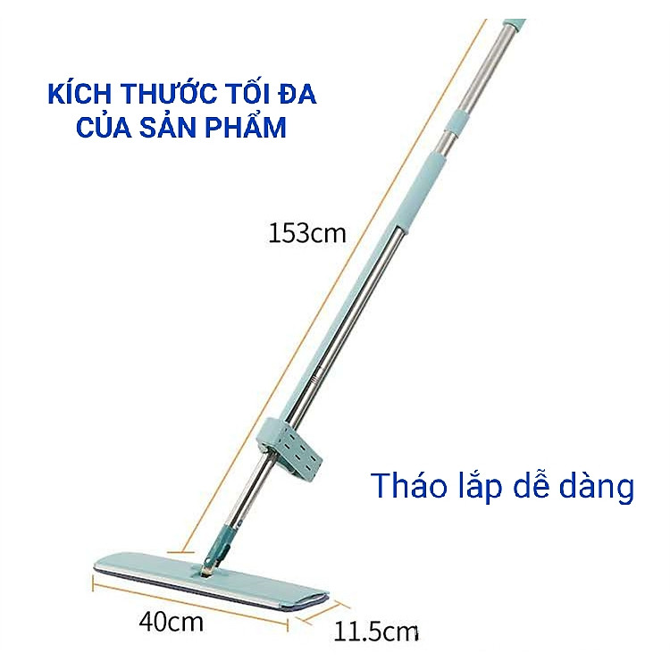 Bàn lau xoay 360 độ linh hoạt trong những không gian nhỏ hẹp nhất như gầm tủ, gầm ghế, gầm bàn, khe góc tường Đặc biệt cán cây dài 1,25m giúp chị em lau nhà không cần khom cúi đỡ mệt mỏi lưng và cổ khi vệ sinh nhà cửa.