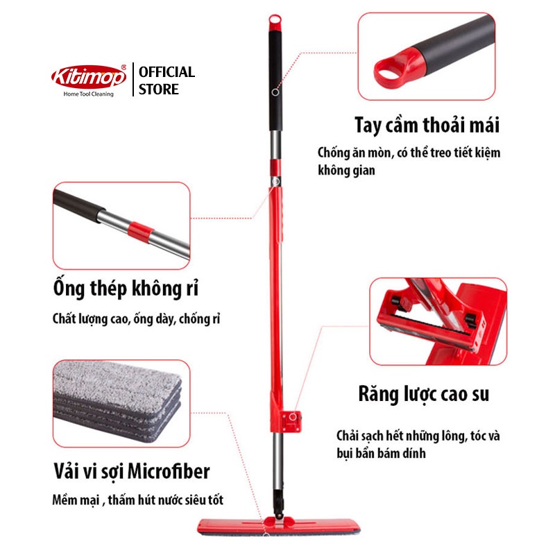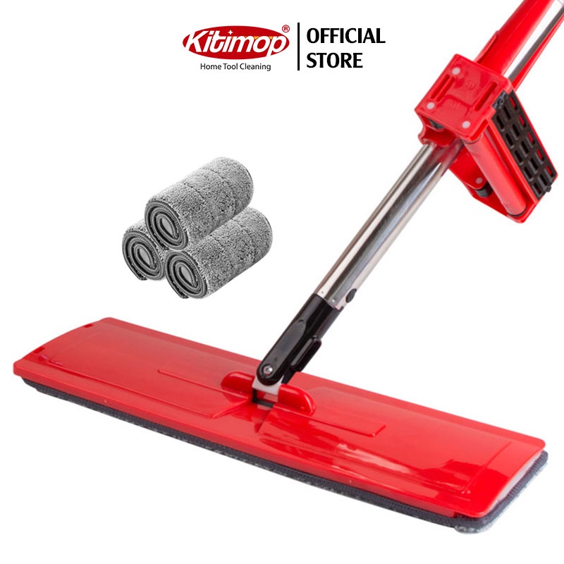 Nhà cửa & Đời sống > Dụng cụ chăm sóc nhà cửa > Cây lau nhà || Cây lau nhà tự vắt Kitimop-Red có con lăn trợ lực , vắt khô 95%, bàn lau xoay 360 độ, lau sạch khô nhanh, 3 miếng lauCòn hàng