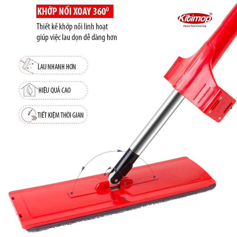 Cây lau nhà tự vắt thông minh chổi lau nhà 360 độ, 3 miếng lau Kitimop-RED