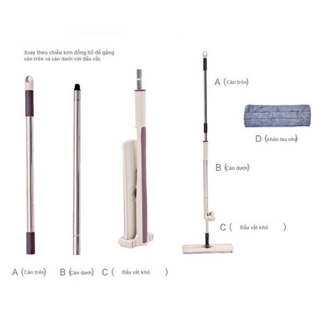- Bước 1: Sau khi mở hộp sản phẩm Chổi lau nhà , bạn lắp ráp các thanh cây lau lại với nhau.