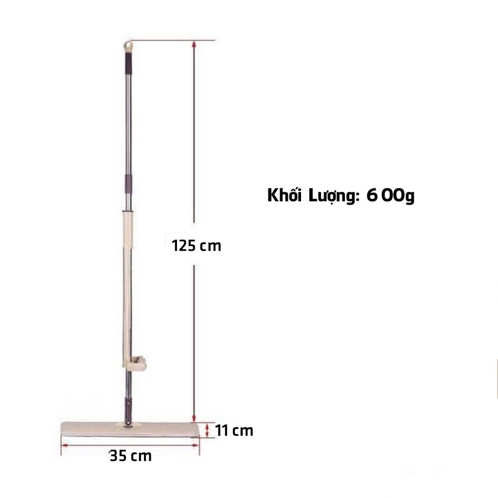 - Kích thước: Chiều dài cán 125cm, bông lau 35cm x 11cm.