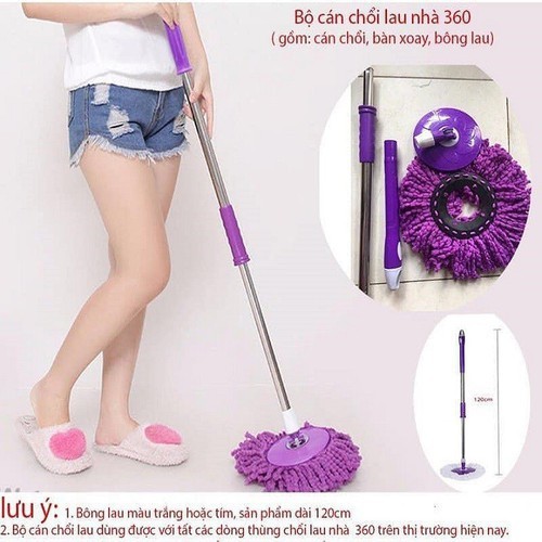 - Sản phẩm gồm: 1 thân cây lau nhà, 1 bông lau, 1 bàn xoay (không thùng vắt)