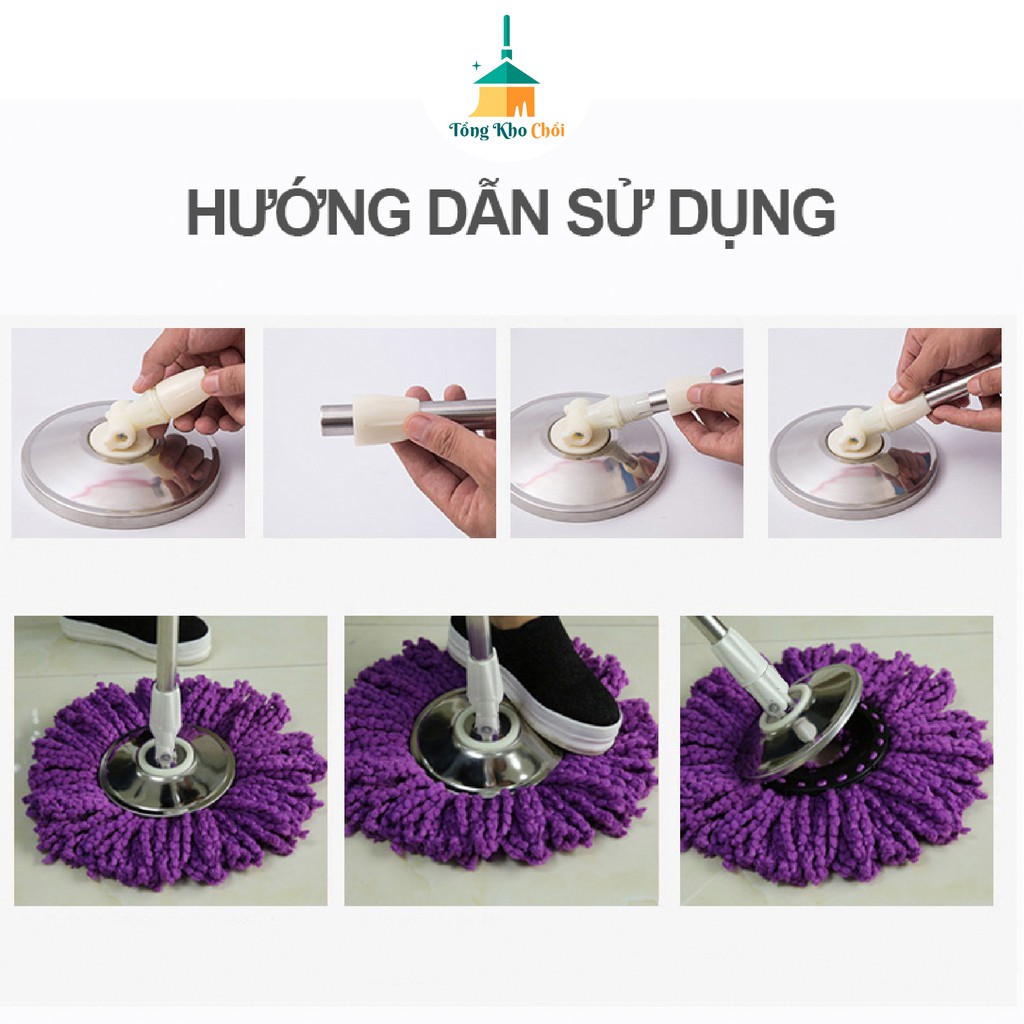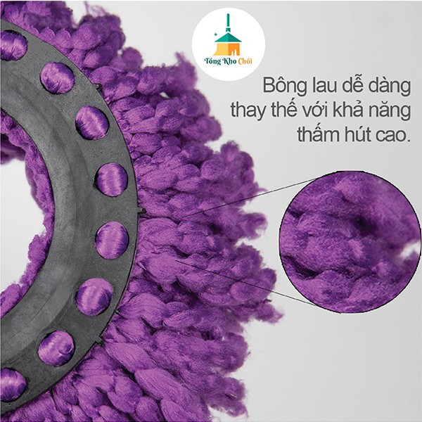 - Sản phẩm gồm: 1 thân cây lau nhà tự vắt, 1 bông lau, 1 bàn xoay (không thùng vắt)