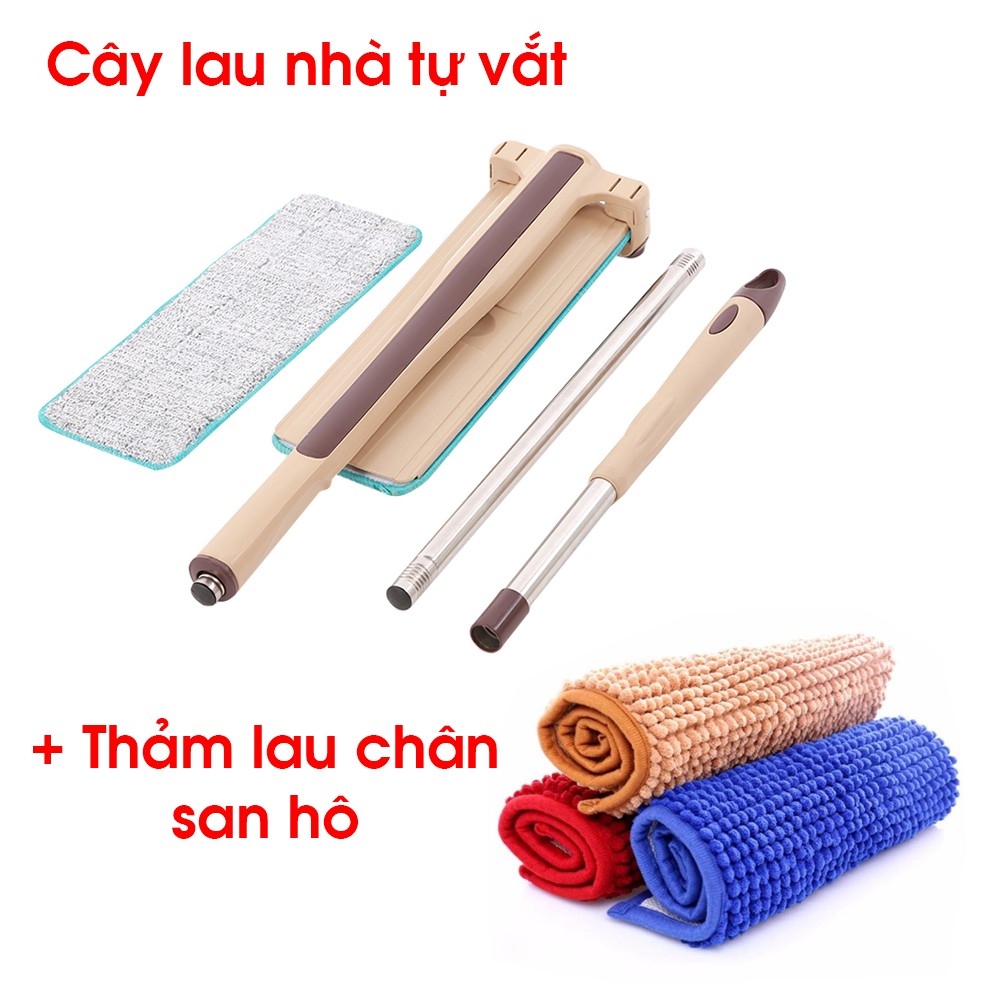 COMBO Cây lau nhà tự vắt + Thảm lau chân san hôCây lau nhà vắt phẳng thông minh xoay 360 độ được thiết kế thông minh với đầu lau sàn hình chữ nhật tạo nên lực ly tâm lớn, giúp nhẹ nhàng lau sạch mọi bụi bẩn trên sàn nhà hay mọi ngõ ngách, góc hẹp trong ngôi nhà bạn một cách nhanh chóng và sạch sẽ.