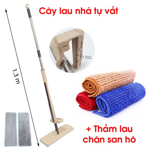 Cây lau nhà tự vắt + Thảm lau chân san hô