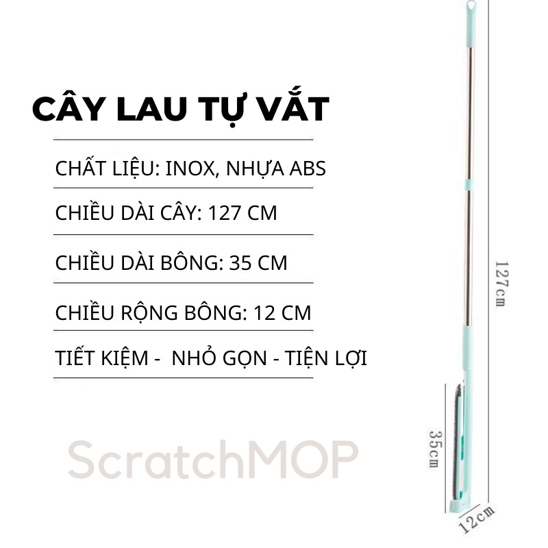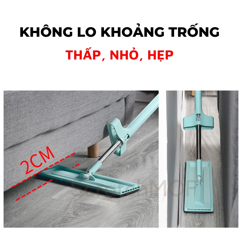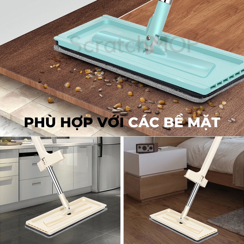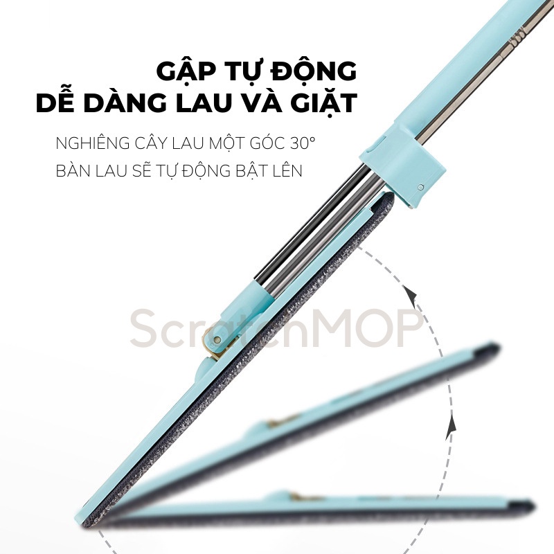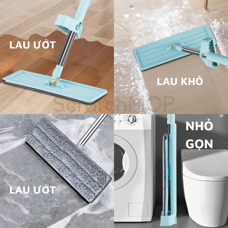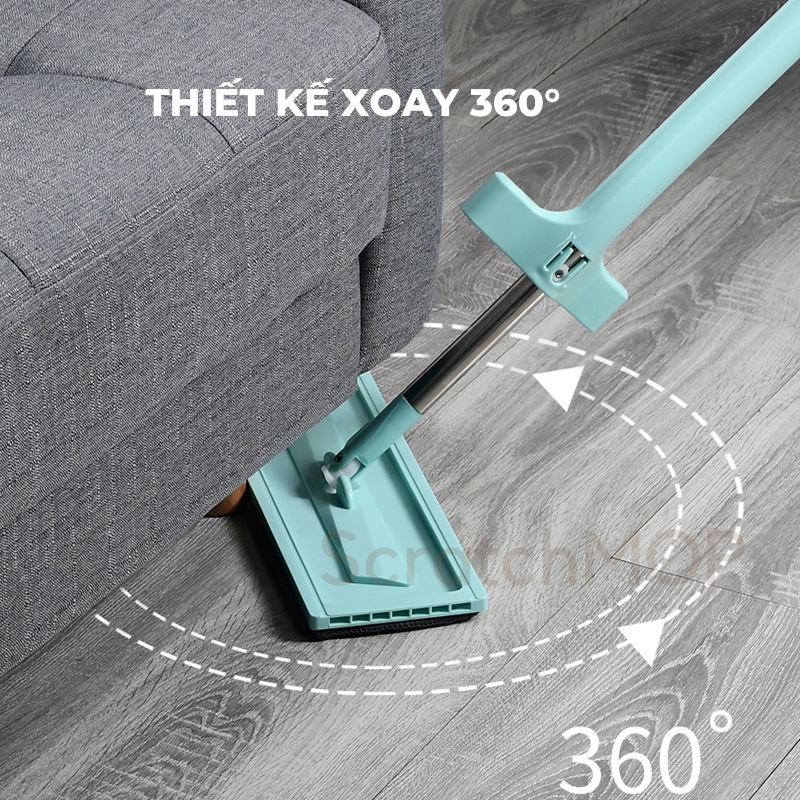 - Cây lau nhà có thể để đứng 90 độ, để nghiêng 180 độ, có thể xoay vòng 360 độ dễ dàng sử dụng