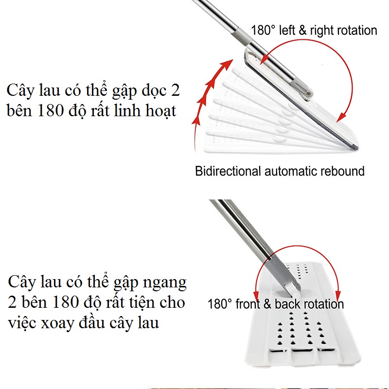 - Bàn lau lớn có thể xoay 360 độ
