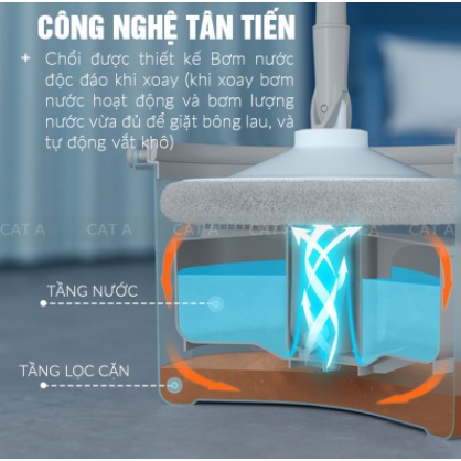 - Chổi lau nhà thiết kế thông minh, dễ dàng sử dụng, TỰ ĐỘNG TÁCH NƯỚC LAU BẨN VÀ NƯỚC SẠCH