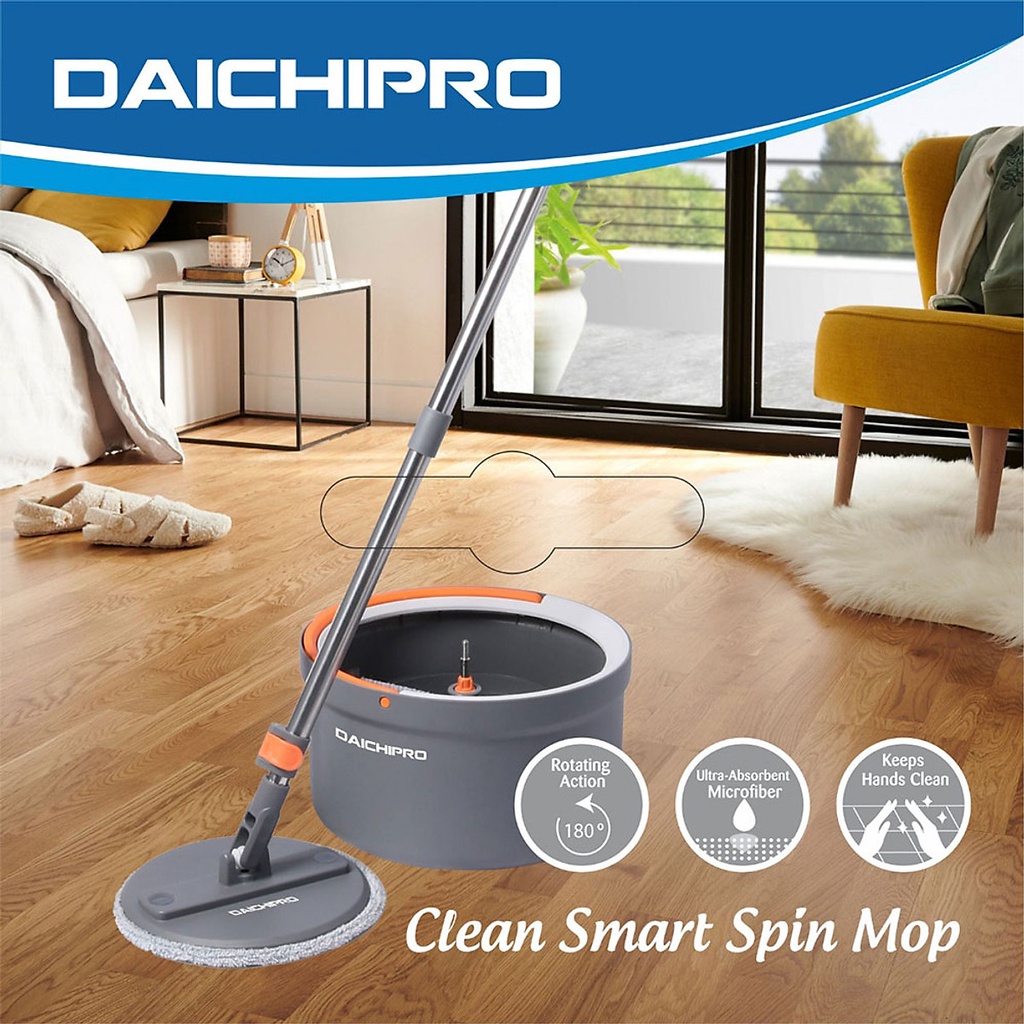 👉Cây lau nhà thông minh 360 DAICHIPRO DCP 5SM có đầu bông lau linh hoạt giúp bạn làm sạch mọi ngóc ngách một cách dễ dàng. Bông lau có thể được sử dụng cho nhiều loại sàn khác nhau: Sàn gỗ, sàn nhựa, đá hoa, kí và đánh bật mọi loại vết bẩn.