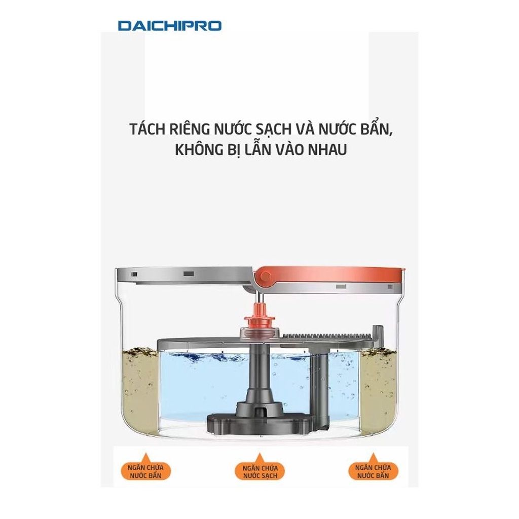 👉 DAICHIPRO DCP 5SM tích hợp chế độ giặt và vắt trong cùng 1 thùng chứa tiện lợi, lực quay ly tâm cực mạnh. Bạn chỉ cần nhấn nhẹ là chổi đã được vắt khô sau 10-12 lần xoay,