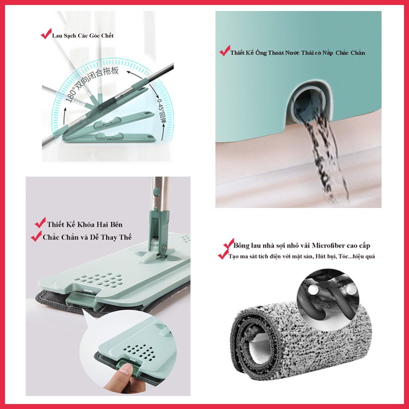 - Sản phẩm bao gồm: 1 thùng nước, 1 cây lau, 3 miếng lau