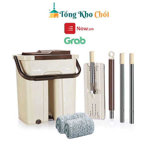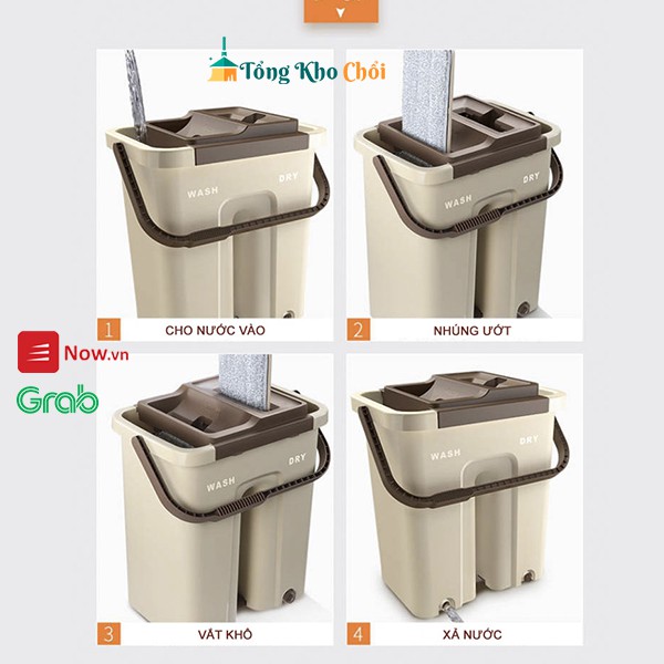 - Thùng 2 ngăn : 1 ngăn vắt khô tự động - 1 ngăn chứa nước để giặt cây lau