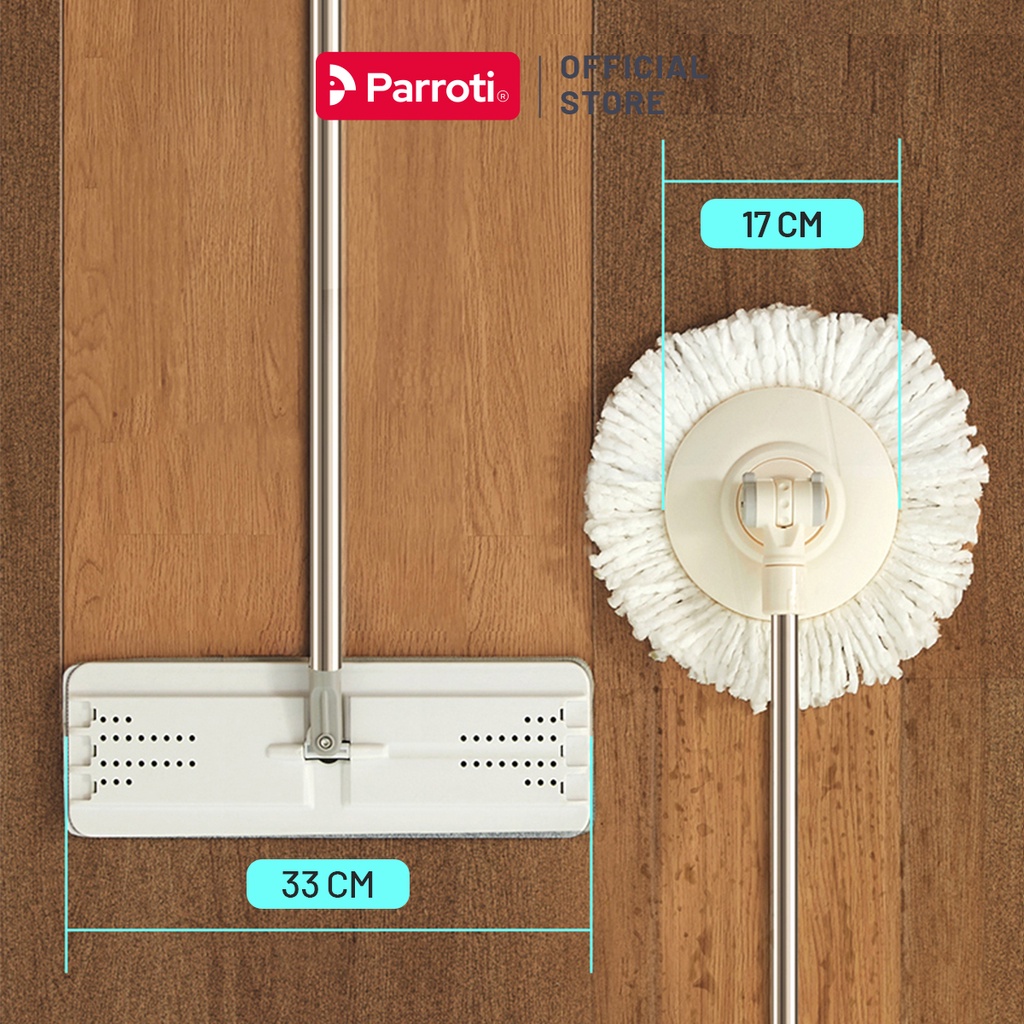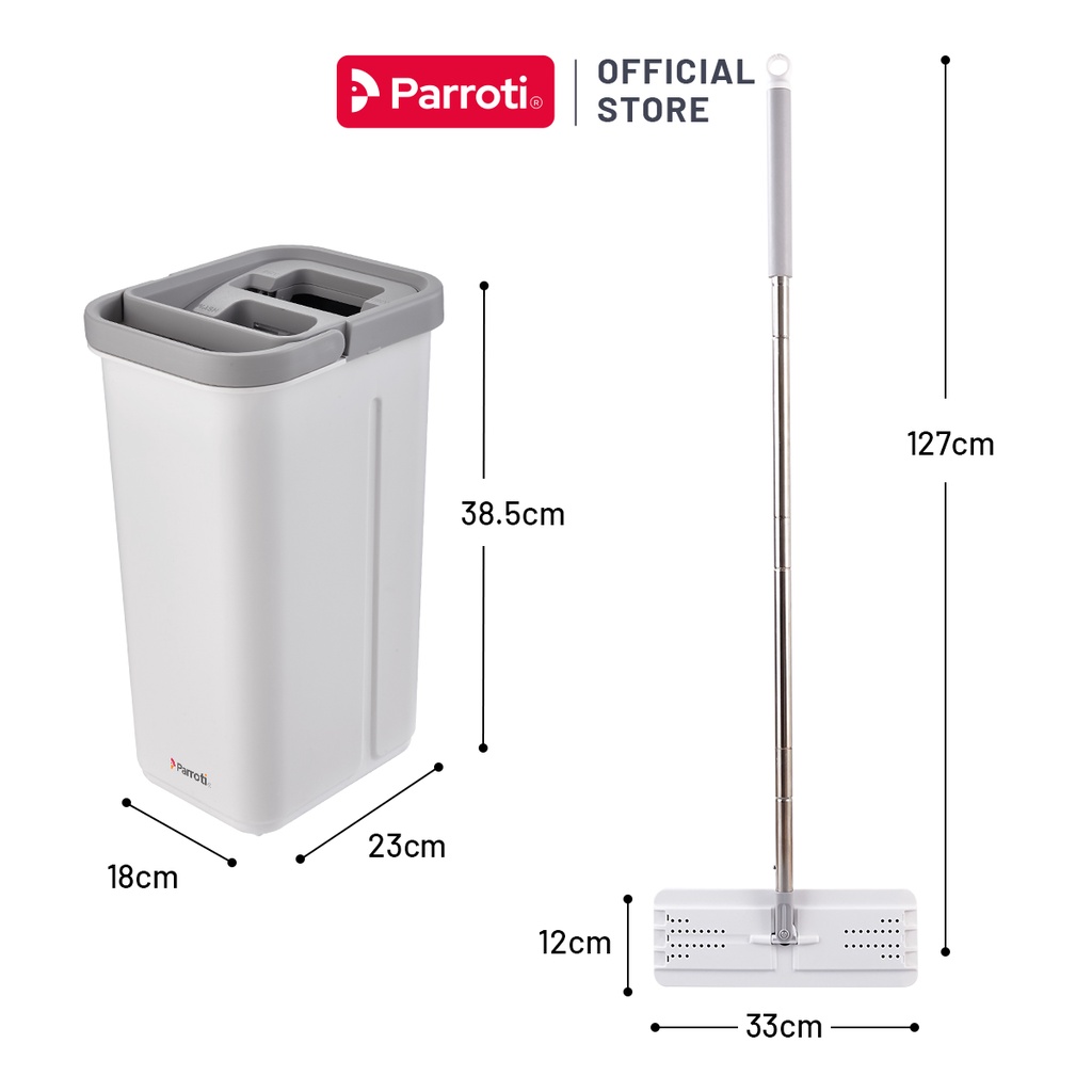 Bộ lau nhà thông minh tự vắt Parroti với khả năng lau sạch sàn nhà một cách nhanh chóng và nhẹ nhàng, phù hợp với mọi loại bề mặt sàn như sàn gạch, sàn gỗ, sàn đá, tường ốp gạch và mặt kính, phù hợp với mọi không gian và diện tích nhà ở, bộ cây lau nhà Parroti được thiết kế thông minh và cực kỳ gọn gàng giúp tiết kiệm không gian bảo quản đặc biệt là nhà chung cư hoặc các căn nhà có không gian hạn chế.1. ƯU ĐIỂM SẢN PHẨM: