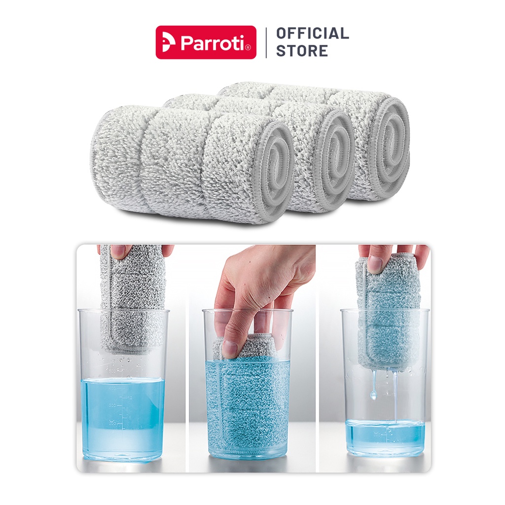 Cấu tạo miếng lau Microfiber Parroti gồm 3 lớp: lớp Polyester bám dính; lớp giữa thấm chất lỏng cực tốt; lớp ngoài cùng là chất Microfiber siêu bền giúp loại bỏ hết các loại chất bẩn, bụi mịn, đặc biệt chất vải này có khả năng HÚT NƯỚC tuyệt vời.