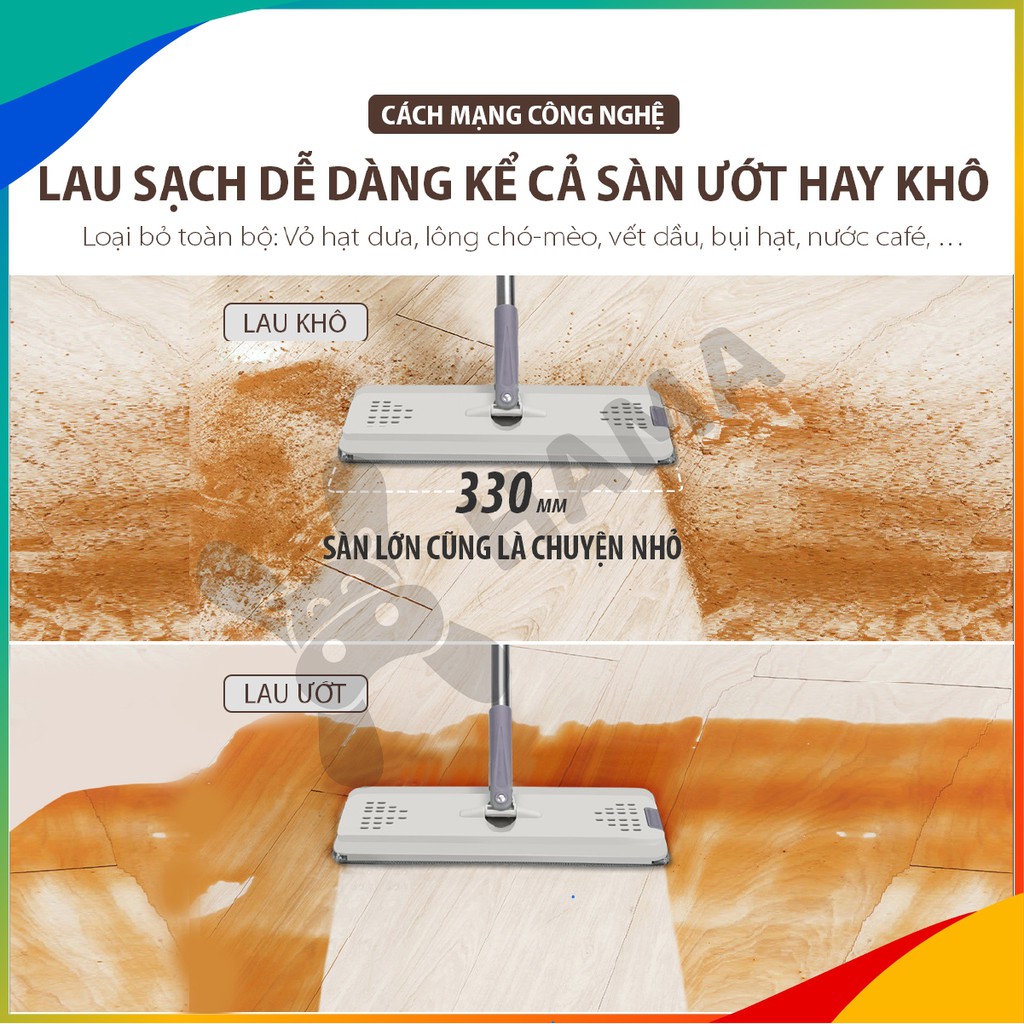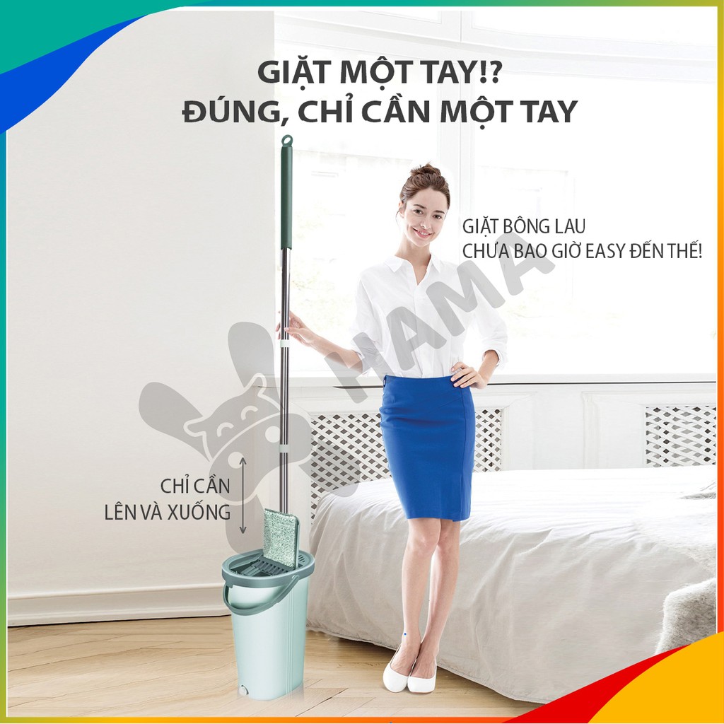 Cây lau nhà tự vắt thông minh 𝗛𝗔𝗠𝗔, có bàn lau kích thước 33x12cm.Bộ lau nhà thông minh 𝗛𝗔𝗠𝗔, có kèm thùng, bàn lau hình chữ nhật. Tính năng ưu việt có thể tự vắt được, lau nhiều bề mặt: gạch men, sàn xi măng bóng, sàn gỗ, lát đá, vách kính, cửa sổ, …