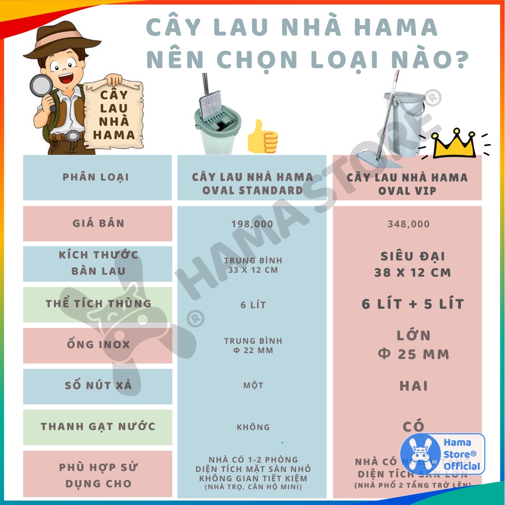 Giới thiệu Cây lau nhà tự vắt thông minh HAMA, Oval Standard , mã GD_VS_001