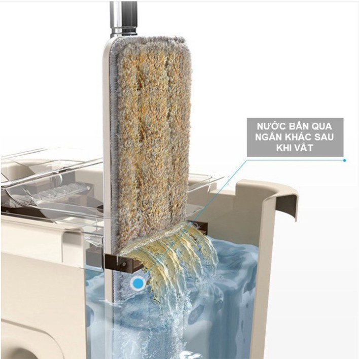 - Thùng 2 ngăn : 1 ngăn vắt khô tự động - 1 ngăn chứa nước để giặt cây lau
