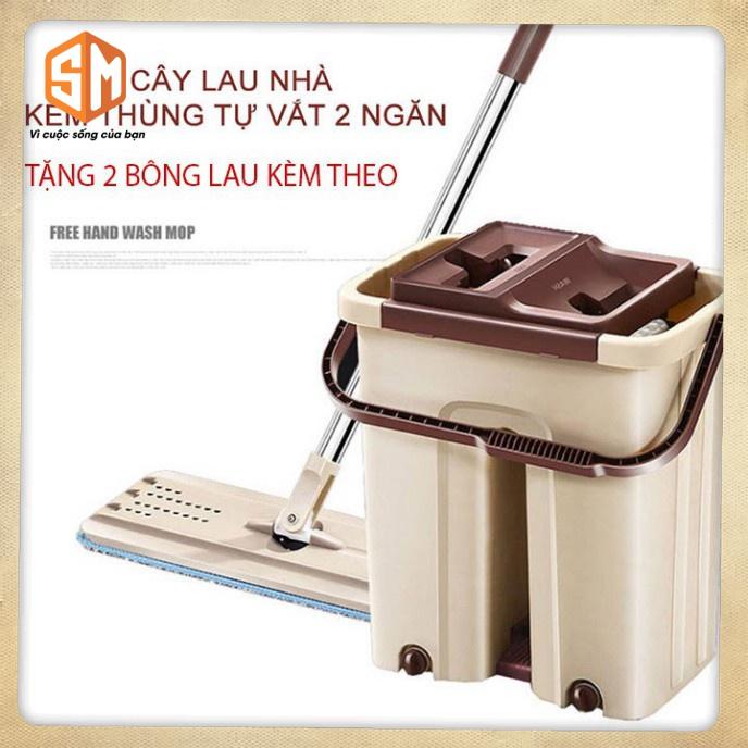 Cây Lau Nhà Tự Vắt Thông Mình-Kèm 2 Thùng Lớn-Tặng Kèm 2 Bông LAU