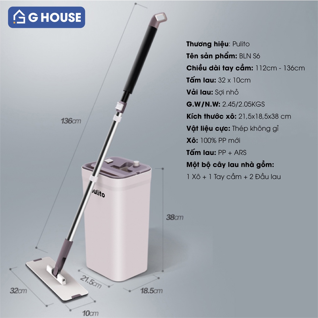 Nhà cửa & Đời sống > Dụng cụ chăm sóc nhà cửa > Cây lau nhà || Bộ lau nhà tự vắt thông minh xoay 360, tặng 2 miếng lau Pulito BLN-S6Còn hàng