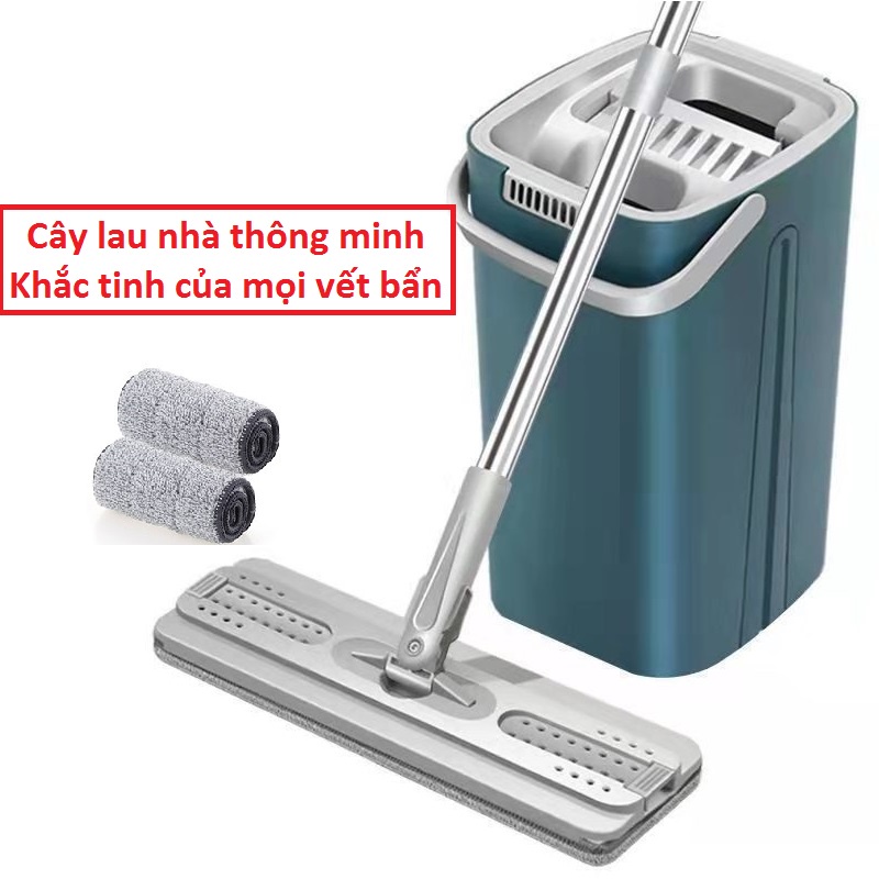 Cây lau nhà tự vắt thông minh xoay 360 độ -luồn sâu mọi ngóc nghách kèm 2 bông lau