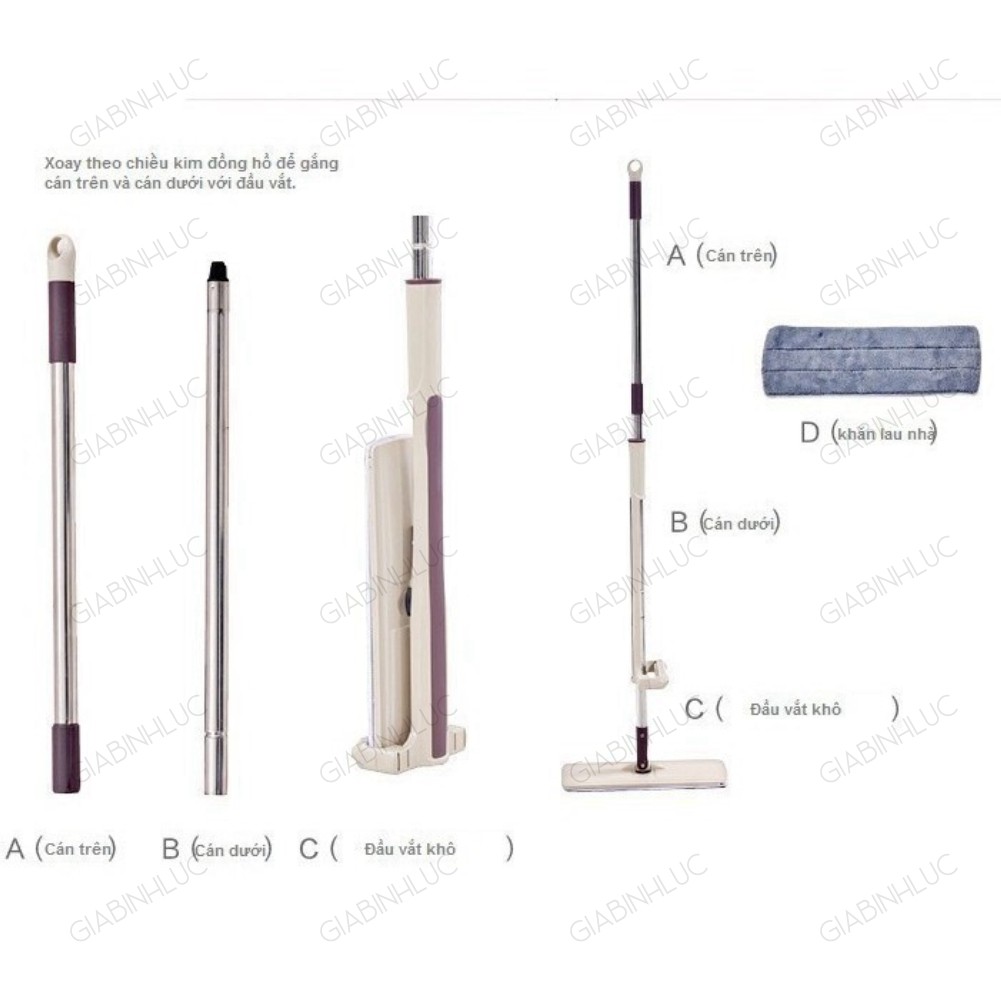 - Thân CÂY LAU NHÀ được thiết kế gọn nhẹ, chắc chắn bằng chất liệu nhựa, inox bền đẹp với