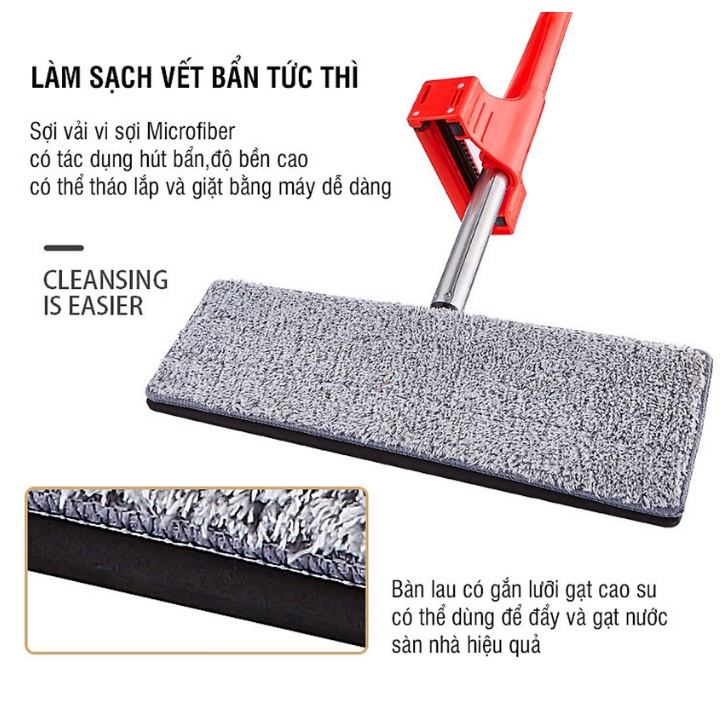 - Cây lau nhà có thiết kế thông minh tự vắt khô nước mà không cần đụng tay.