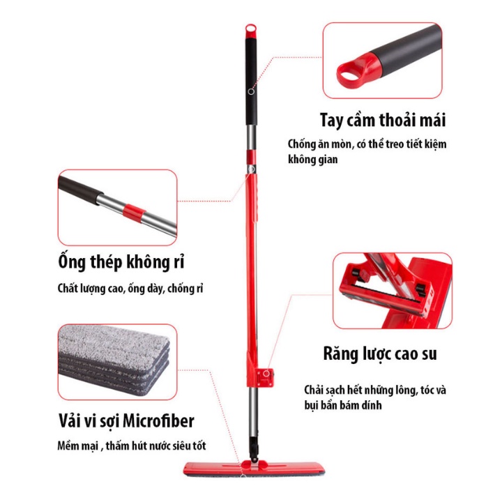 - Cây lau nhà chắc chắn với ống thép to dày nên khi lau nhà sẽ có cảm giác cầm đầm tay, độ bền cao sử dụng dài lâu không lo hao mòn.