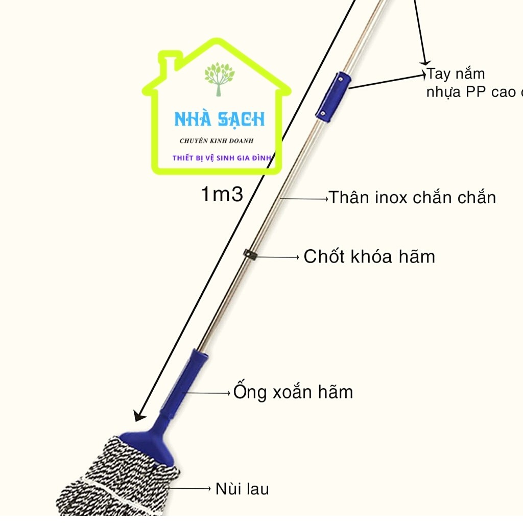 - Bông lau dày, thấm hút nước, có thể xoay vặn cho ráo nước.