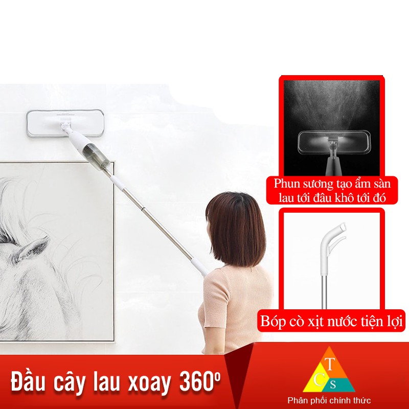 > Được trang bị két nước với dung tích chứa 350ml để bạn có thể sử dụng chứa nước lau nhà giúp sàn nhà sạch hơn mà không cần thêm một chậu nước đi kèm. Bạn có thể cho nước lau sàn trực tiếp vào két nước, sử dụng tay bóp xịt phun sương với diện tích rộng tới 95cm phía trước tấm lau sàn.