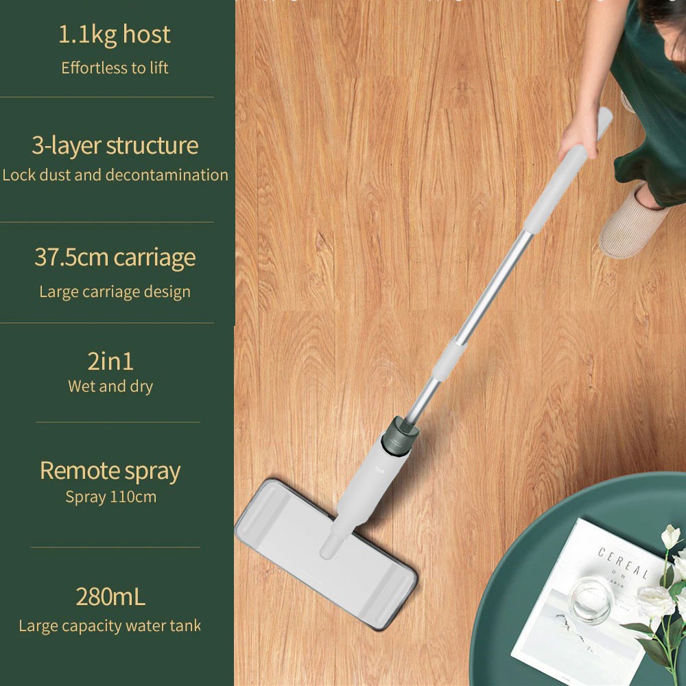 ● Áp dụng cho nhiều loại sàn vật liệu: Thích hợp cho sàn gỗ / đá cẩm thạch / gạch lát và các vật liệu khác nhau, đồng thời có thể dễ dàng xử lý các vết bẩn khô và ướt khác nhau. ● Dung tích bình chứa nước 280ml: Bình chứa nước có dung tích chứa nước là 280mL. Nó có thể được phun 250 lần khi đầy nước, và diện tích lau là 100 mét vuông.