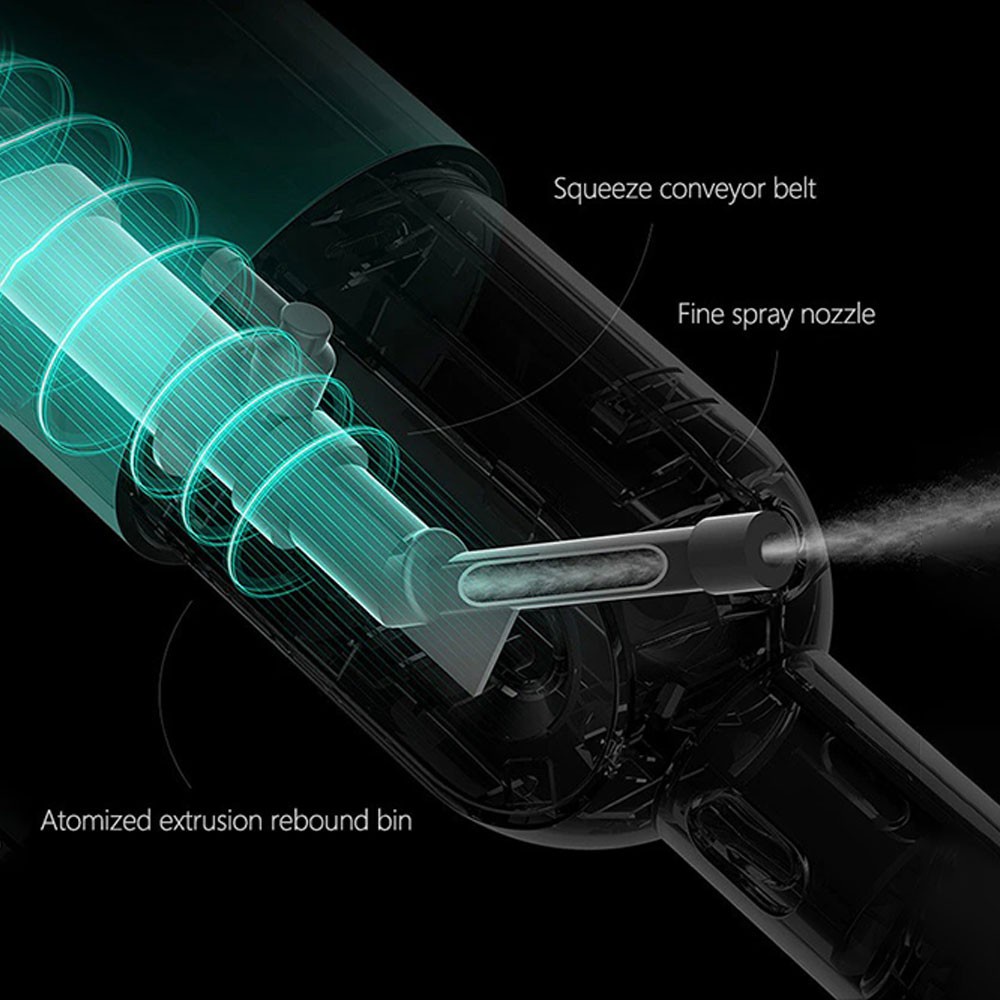 ● Phương pháp Lau ướt: Tích hợp bơm phun tăng áp, ấn nhẹ tay cầm để tạo áp lực và phun ra trong 0,1 giây.