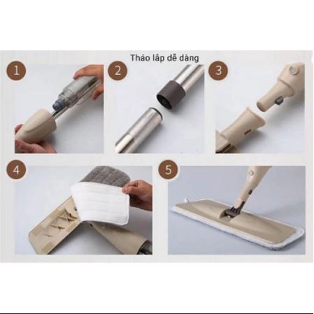 HƯỚNG DẪN SỬ DỤNG: Chổi lau nhà phun sương xoay 360 độ - Bước 1: Lắp ráp theo hướng dẫn cuối video/ảnh sản phẩm