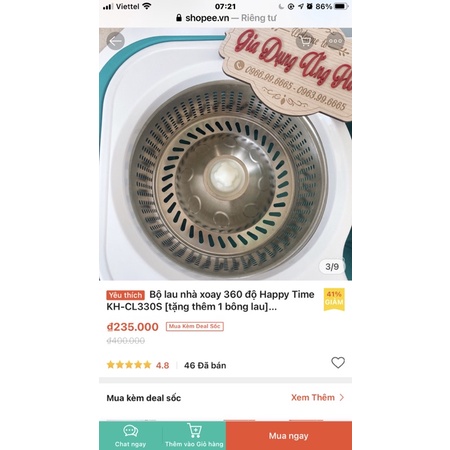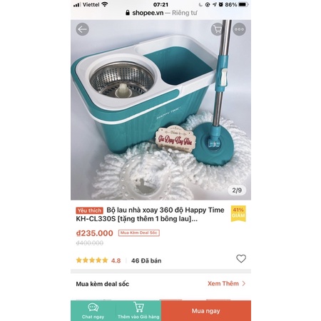 Nhà cửa & Đời sống > Dụng cụ chăm sóc nhà cửa > Cây lau nhà || Bộ lau nhà xoay 360 độ Happy Time KH-CL330S [tặng thêm 1 bông lau]Còn hàng