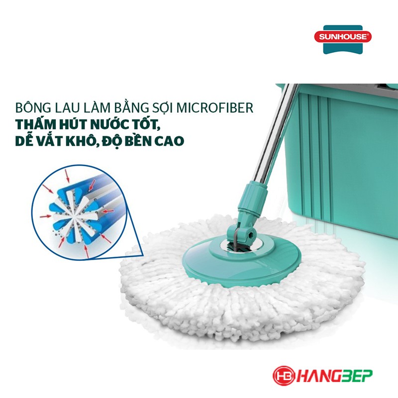 Nhà cửa & Đời sống > Dụng cụ chăm sóc nhà cửa > Cây lau nhà || Bộ lau nhà xoay 360 độ Happy Time KH-CL330S [tặng thêm 1 bông lau][Sunhouse]Còn hàng