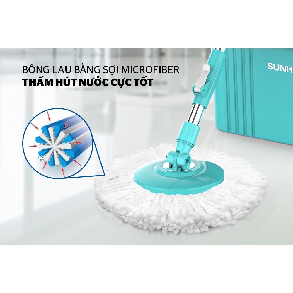 Nhà cửa & Đời sống > Dụng cụ chăm sóc nhà cửa > Cây lau nhà || Bộ lau nhà xoay 360 độ Happy Time KH-CL330S [tặng thêm 1 bông lau][Sunhouse]Còn hàng