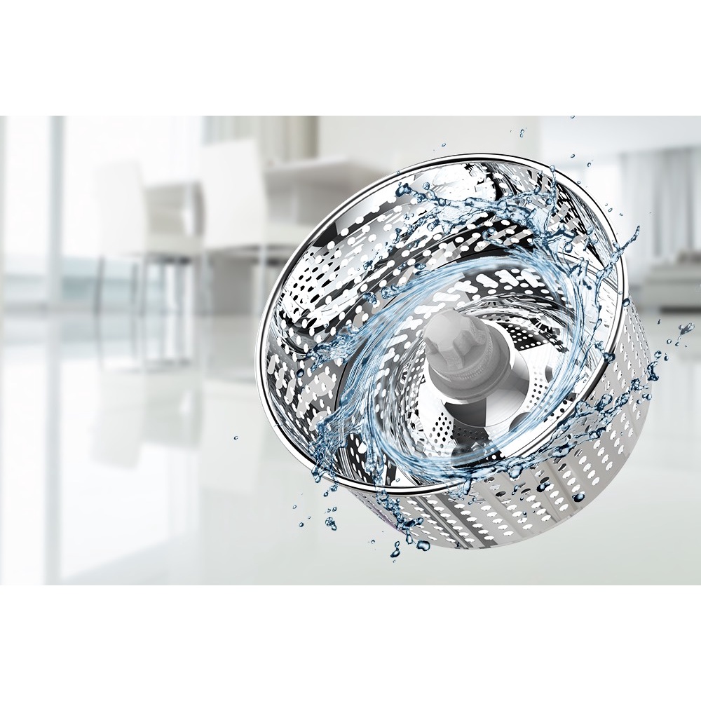 Ngoài ra, dưới thùng giặt có 4 bánh xe giúp cân bằng và dễ dàng di chuyển sản phẩm mà không cần tốn quá nhiều công sức để xách thùng nước lau nhà, thoải mái tận hưởng mà không lo đau lưng hay mỏi tay.