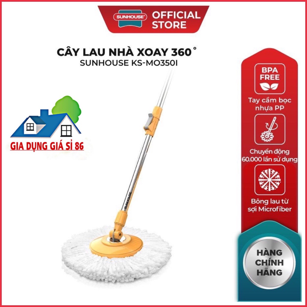 Tên sản phẩm Cây lau nhà xoay 360 độ SUNHOUSE KS-MO350I