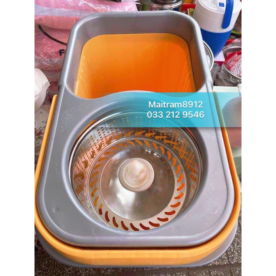 Bên trong thùng giặt có 1 lồng vắt bằng inox chống han gỉ và giúp dễ dàng vắt khô nước của bông lau nhờ cơ chế vắt ly tâm và thiết kế lỗ thoát tiện dụng.