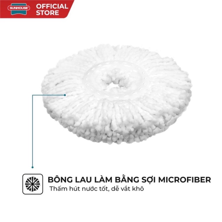 Tấm bông lau làm bằng sợi Microfiber thiết kế đan chéo lập thể siêu nhỏ giúp thấm hút nước tốt, vắt khô nhanh gấp nhiều lần so với các loại khăn lau thông thường, có tác dụng lau sạch bụi bẩn nhanh chóng nhất. Hệ thống vắt nước tích hợp gọn và tiện lợi, dễ dàng giặt và vắt khô bông lau. Đặc biệt, sợi Microfiber có ưu điểm là không bị xơ cứng nên không làm trầy xước bề mặt được lau.