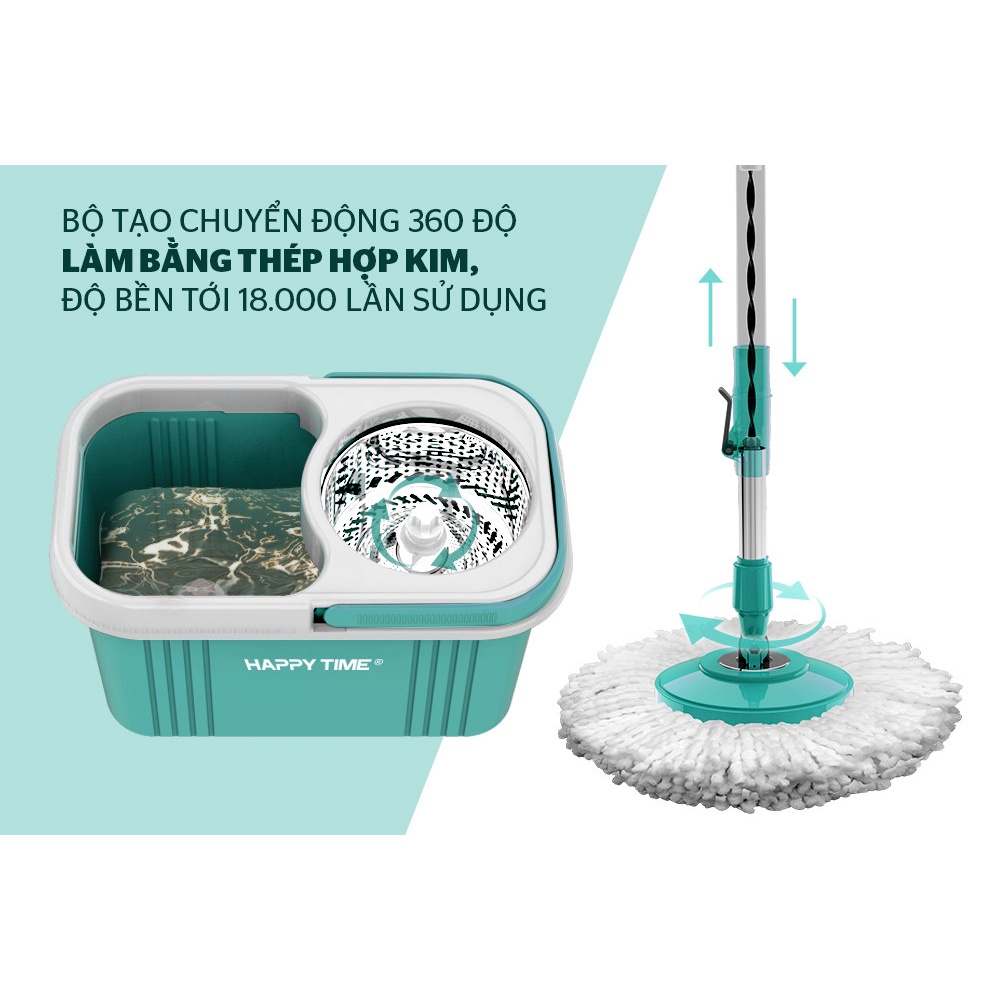 Fullbox thùng lau, cây lau và kèm 2 bông ạ 🤟Với điểm nhấn là bộ tạo chuyển động 360 độ siêu bền, bộ lau nhà HAPPY TIME bạn sẽ dễ dàng lau sạch bụi bẩn trong mọi ngóc ngách và cả những nơi khó lau dọn như gầm giường, gầm bàn, tủ, ghế… giữ cho ngôi nhà của bạn luôn sạch sẽ và thoáng mát.