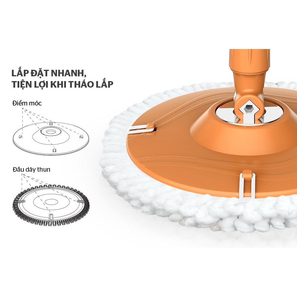 THIẾT KẾ TIỆN DỤNGKích thước phù hợp với hầu hết cây lau nhà 360 độ