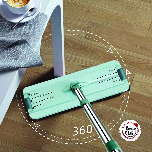-Đầu chổi lau siêu sạch: Bàn lau thiết kế hình chữ nhật dạng dẹt phẳng xoay 360 độ, diện tích lớn, tạo nên lực ly tâm lớn, giúp nhẹ nhàng lau sạch bong mọi bụi bẩn trên sàn thật nhanh chóng và hiệu quả.