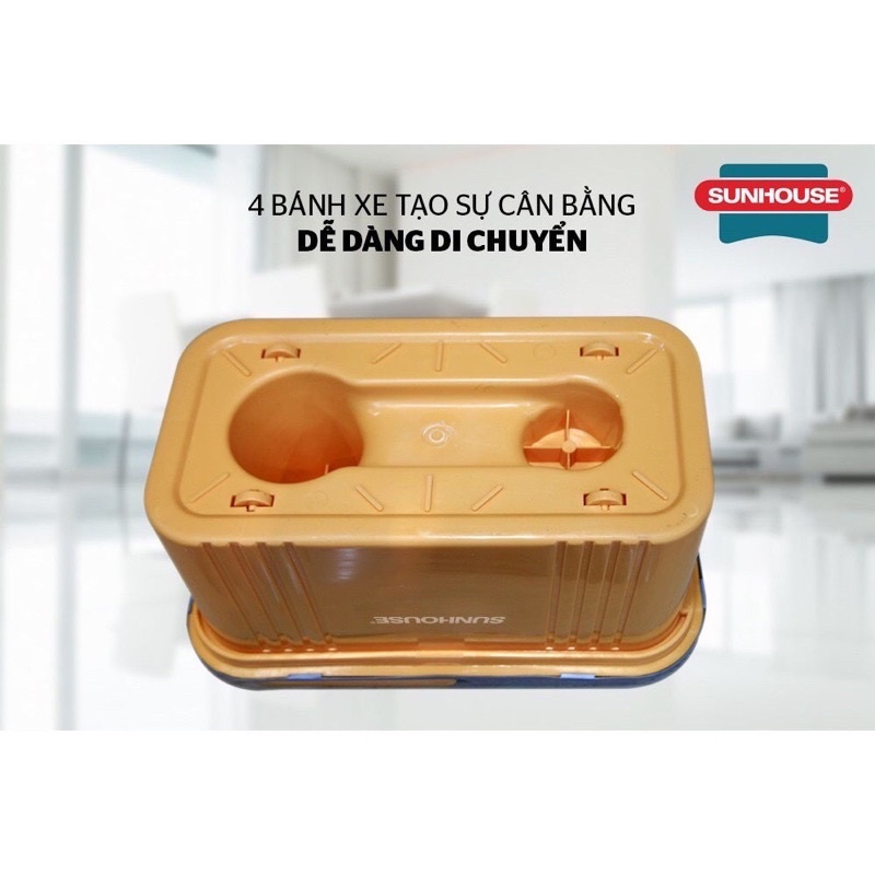 Với điểm nhấn là bộ tạo chuyển động 360 độ siêu bền, bộ lau nhà SUNHOUSE bạn sẽ dễ dàng lau sạch bụi bẩn trong mọi ngóc ngách và cả những nơi khó lau dọn như gầm giường, gầm bàn, tủ, ghế… giữ cho ngôi nhà của bạn luôn sạch sẽ và thoáng mát.