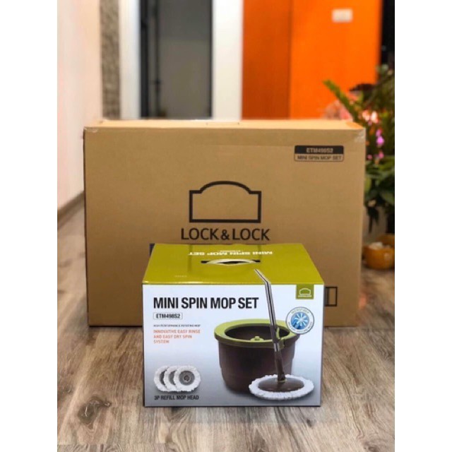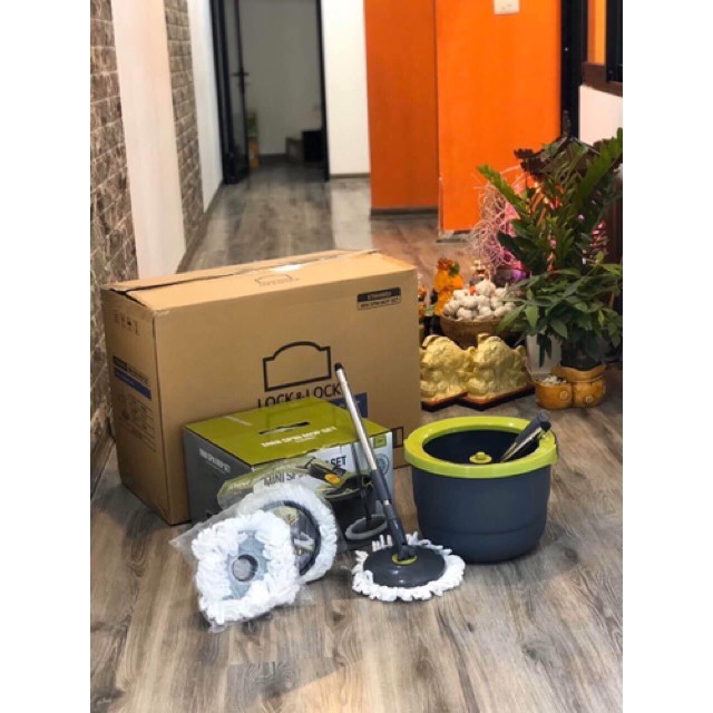 🧨Bộ Cây Lau Nhà Xoay Tay Mini Ettom Lock&Lock ETM498S2 (2 Bông Lau) - Tặng Thêm 2 Bông Lau