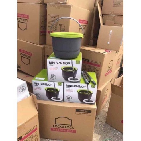 Cây Lau Nhà Xoay Tay Mini Spin Mop Lock and LockThùng chứa gọn nhẹ, nhựa PP chất lượng