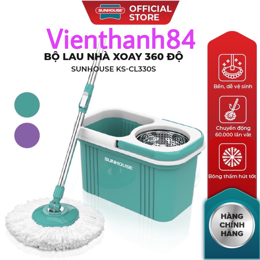 Nhà cửa & Đời sống > Dụng cụ chăm sóc nhà cửa > Cây lau nhà || Bộ lau nhà xoay thông minh SUNHOUSE HAPPYTIME 360 độ KS-CL330S ( 2 bông lau đi kèm)Còn hàng