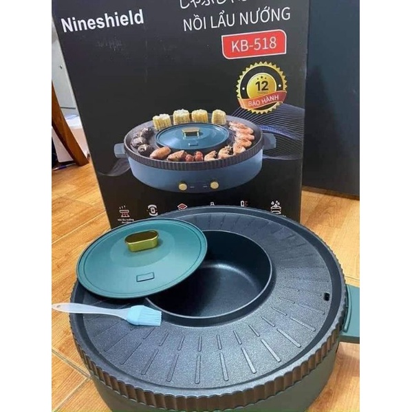 - Sản phẩm là sự kết hợp hoàn hảo giữa bếp nướng xung quanh và bếp lẩu ở giữa. Với bếp lẩu nướng đa năng Nineshield, người sử dụng có thể vừa nướng nhiều loại thức ăn và đồng thời nấu lẩu cùng một lúc. Đặc biệt nồi lẩu ở giữa có thể chia ngăn ( loại uyên ương) giúp bạn có thể ăn song song 2 loại nước lẩu cùng 1 lúc.