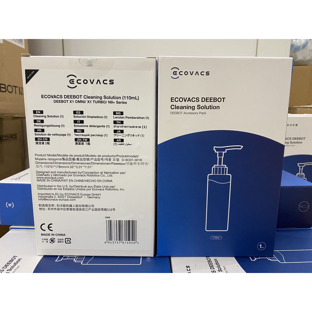 Nước lau sàn chuyên dụng chính hãng cho Robot hút bụi Ecovacs Deebot T8, T9, T10, X1 Omni, X1 Turbo, Dreame W10, N9 plusLà sản phẩm được nhâp khẩu và phân phối chính hãng bởi Ecovacs Việt Nam, thích hợp cho tất cả các dòng Robot hút bụi có chức năng lau ướt trên thị trường, đặc biệt là Ecovacs Deebot T8, T9, T10, X1 Omni, X1 Turbo, N9 plus, Dreame W10